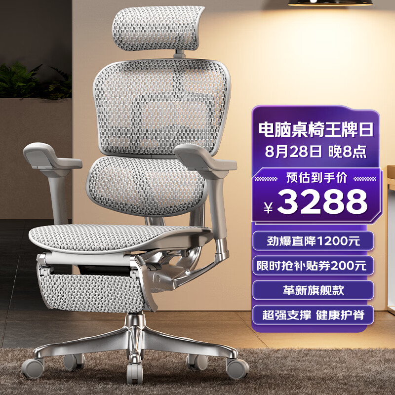 Ergonor保友金豪e2代高端人体工学椅电脑椅办公椅电竞椅子 银白网+躺舒宝价格:4528.00元!