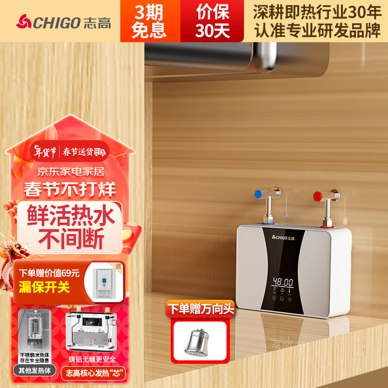 志高(CHIGO)即热式小厨宝5500W电热水器厨房热水器集成免储水水龙头加热器过水热可台上台下 送漏保ZG-KB519价格:298.00元!