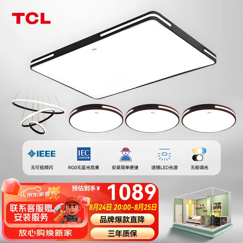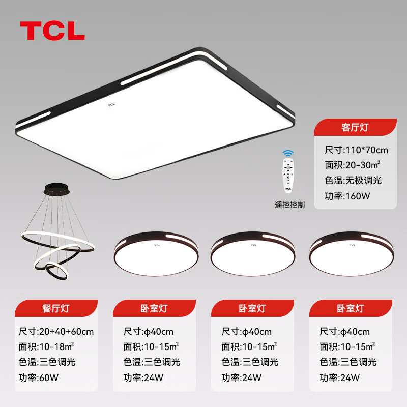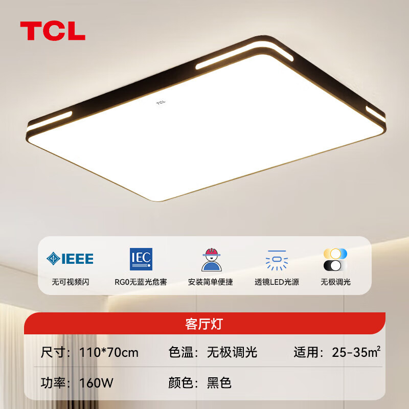 TCL照明 LED客厅灯现代简约大气客厅大灯吸顶灯 知玉系列黑价格:1452.00元!