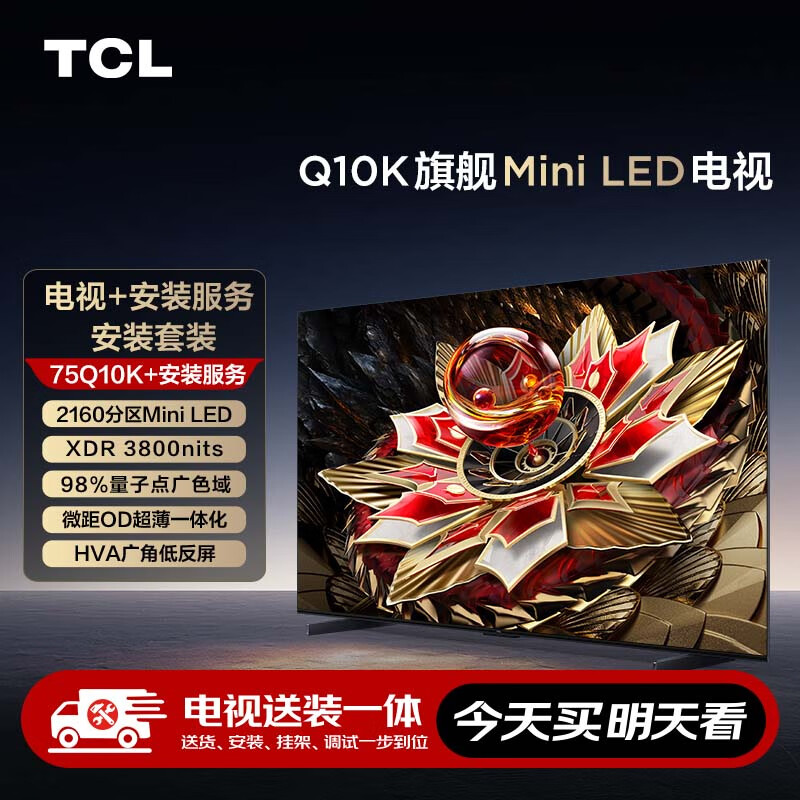 TCL【送装一体版】安装套装-75Q10K 75英寸 旗舰Mini LED电视 Q10K+安装服务含挂架价格:8999.00元!