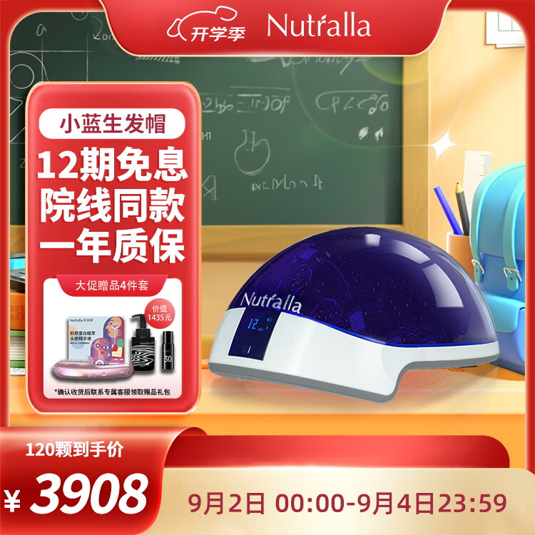 Nutralla妮雀娜 小蓝生发帽 120颗激光生发仪 生发头盔 半导体激光红光头皮护理 固发生发帽 蓝色 SPARK-2价格:6880.00元!