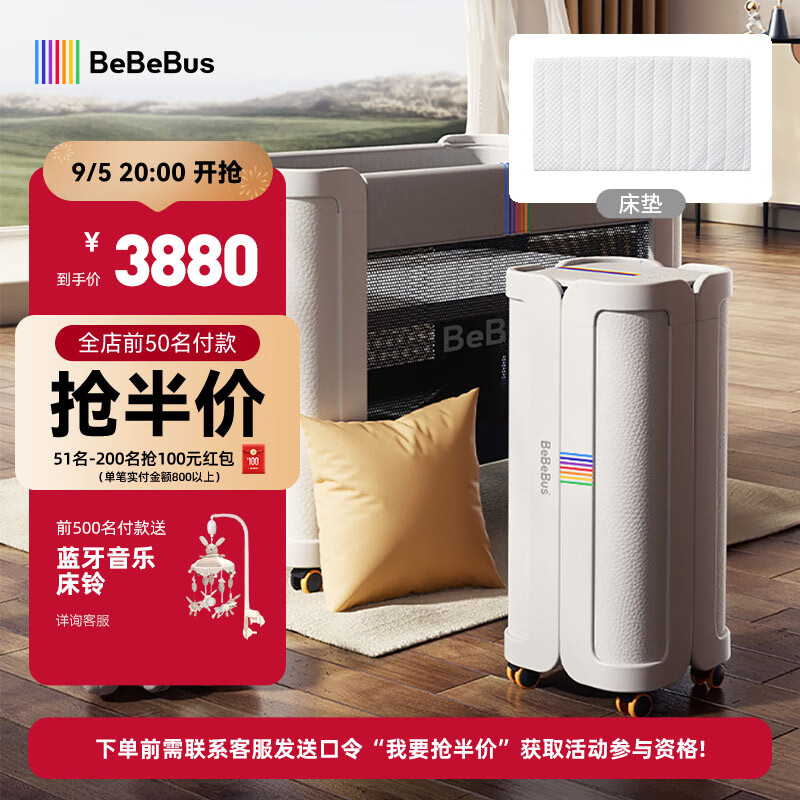 bebebus婴儿床拼接大床筑梦家新生儿床便携移动折叠宝宝床pro+乳胶床垫价格:4480.00元!