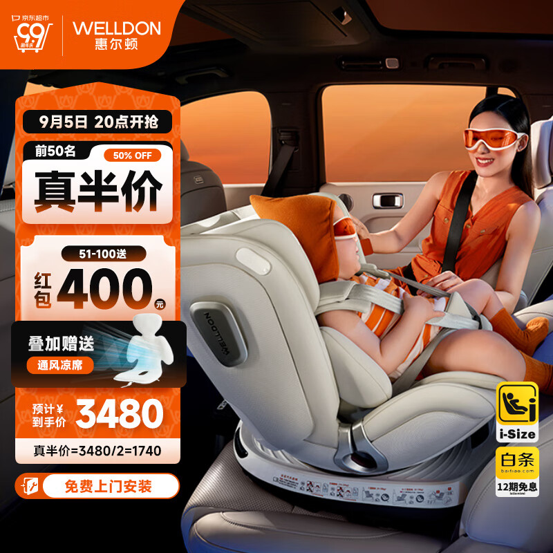 惠尔顿(Welldon)智转2儿童座椅0-4-7岁婴儿车载宝宝汽车用通风旋转isize认证价格:3478.00元!
