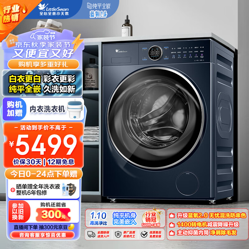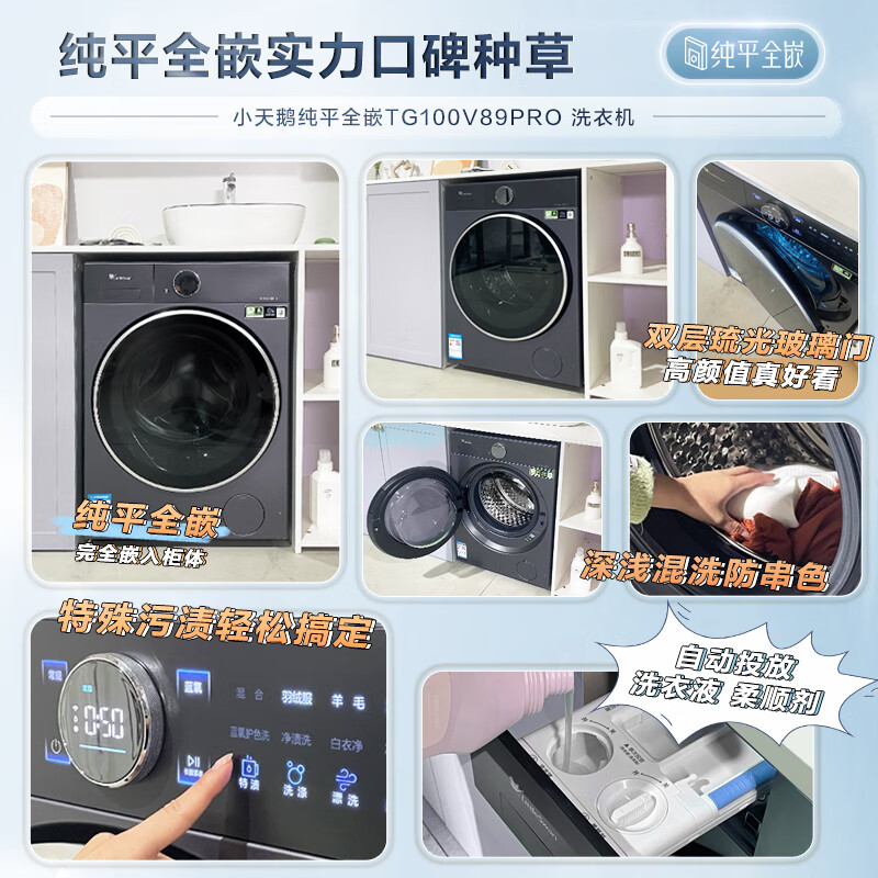 小天鹅(LittleSwan)滚筒洗衣机全自动家用 纯平全嵌【小蓝鲸2.0 TG100V89PRO】蓝氧护色洗 超薄 本色 以旧换新 10公斤价格:5499.00元!