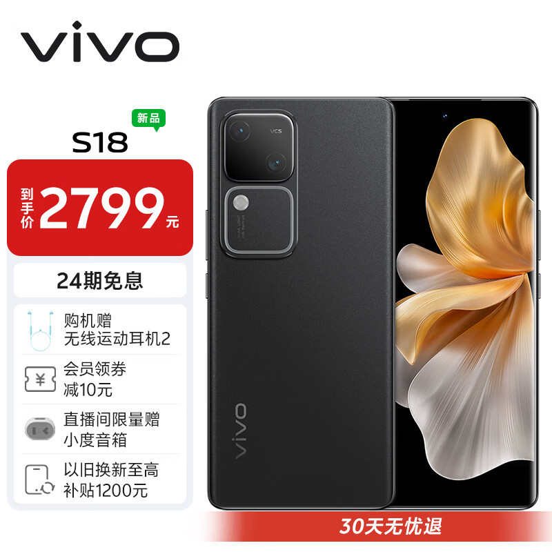 vivo S18 12GB+512GB 玄黑 后置影棚级柔光环 5000mAh超薄蓝海电池 第三代骁龙7 5G 快充 拍照 手机价格:2799.00元!