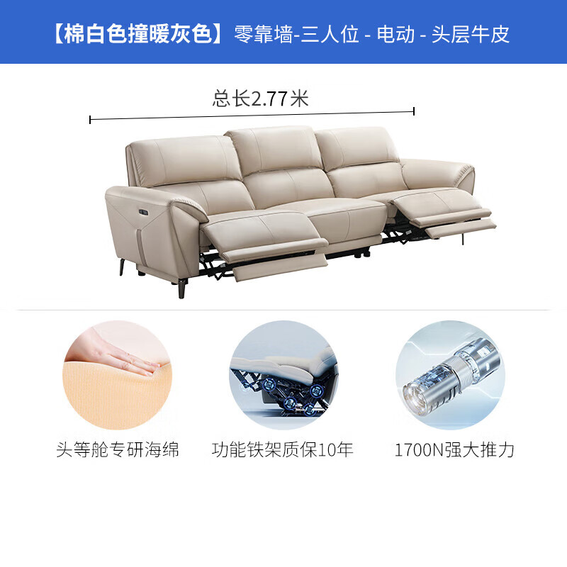 芝华仕(CHEERS)头等舱零靠墙真皮沙发现代功能客厅直排家具芝华士50953白三价格:5999.00元!