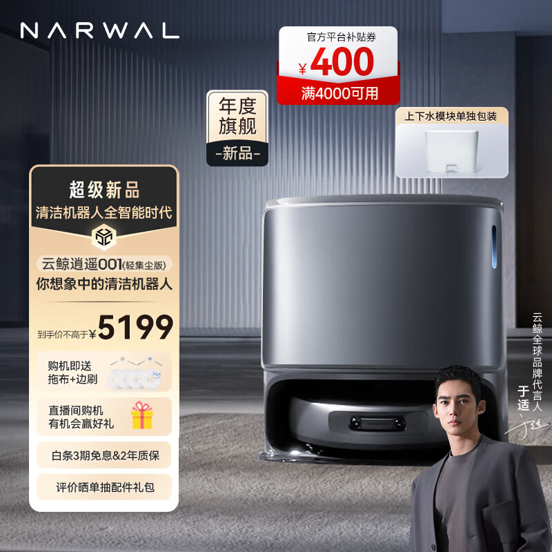 云鲸扫地机器人逍遥001轻集尘版 扫拖一体自动清洗全自动 双芯双目智能防缠绕拖地机 上下水套装深空灰价格:5599.00元!