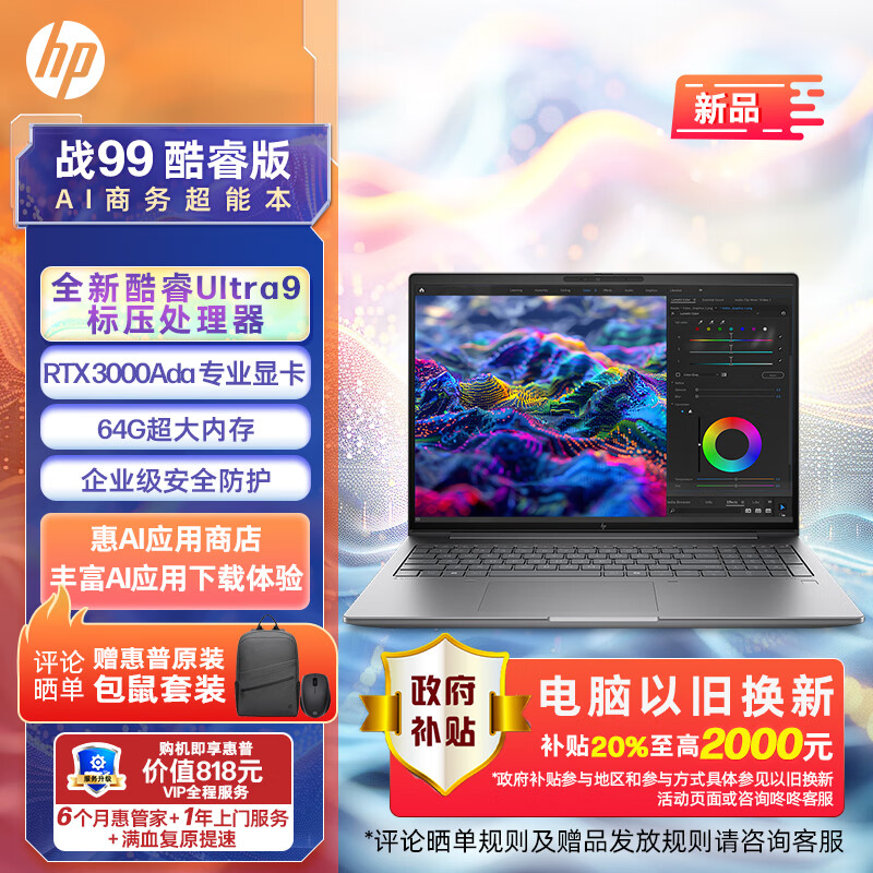 惠普(HP)战99 24款酷睿标压高性能笔记本AI电脑工作站16英寸Ultra9 185H 64G 2T RTX3000Ada 2.5K屏Winpro价格:26999.00元!
