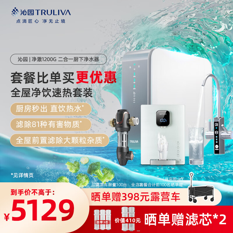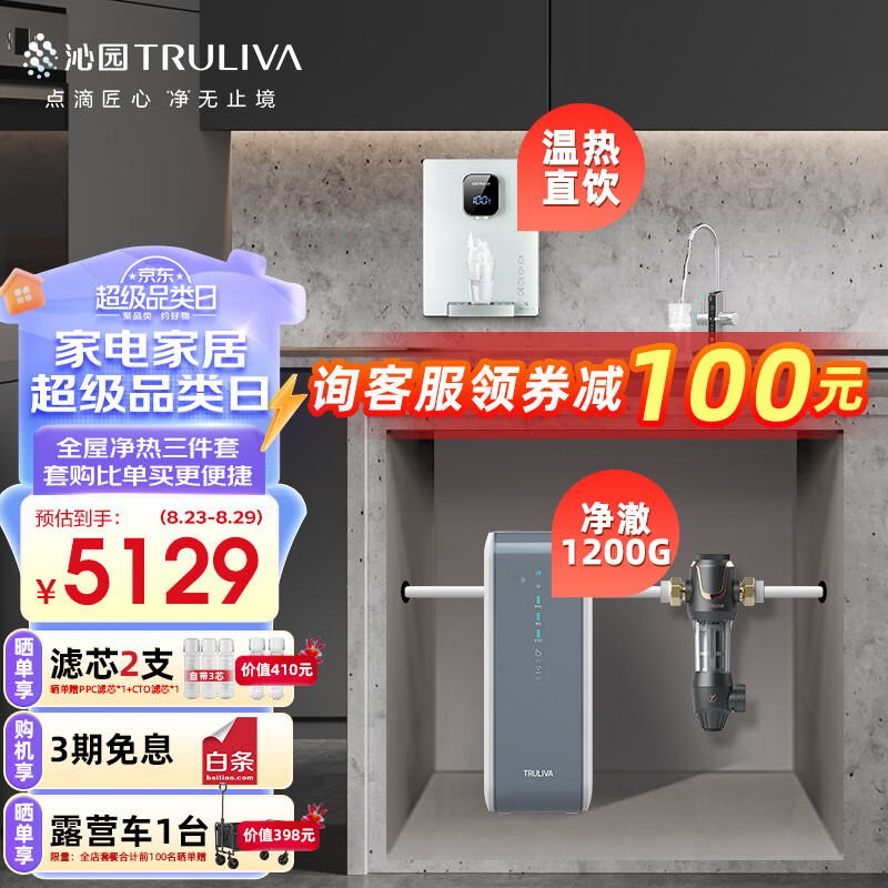 沁园(TRULIVA)净澈双出水1200G三件套装 净水器UR-SX51270+前置过滤器P-A5510+加热管线机LNW580-5W价格:5129.00元!