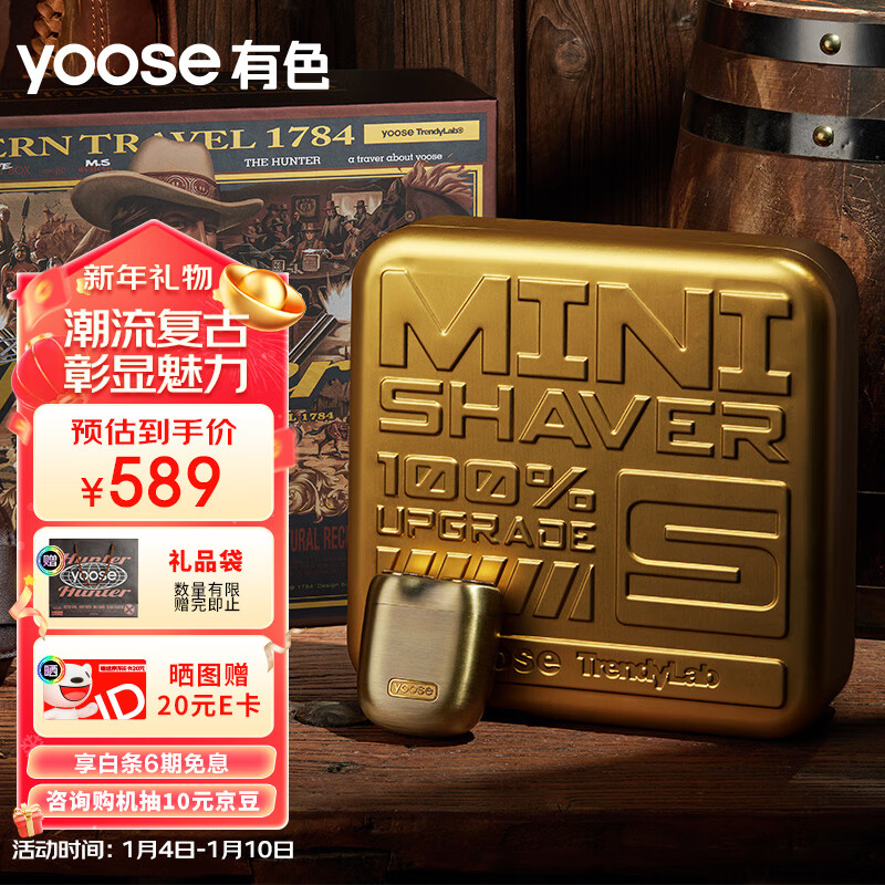 有色(yoose)电动剃须刀 迷你便携刮胡刀 全身水洗 送男友送老公新年礼物生日礼物 胡须刀礼盒 赏金猎人款价格:689.00元!