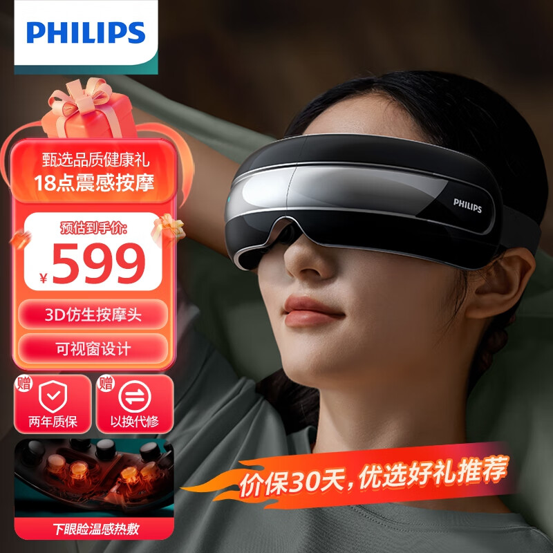 飞利浦(PHILIPS)眼部按摩仪护眼仪眼睛按摩器硅胶点振环眼揉按 热敷缓解干涩疲劳实用送男女友节日礼品推荐5203E价格:599.00元!