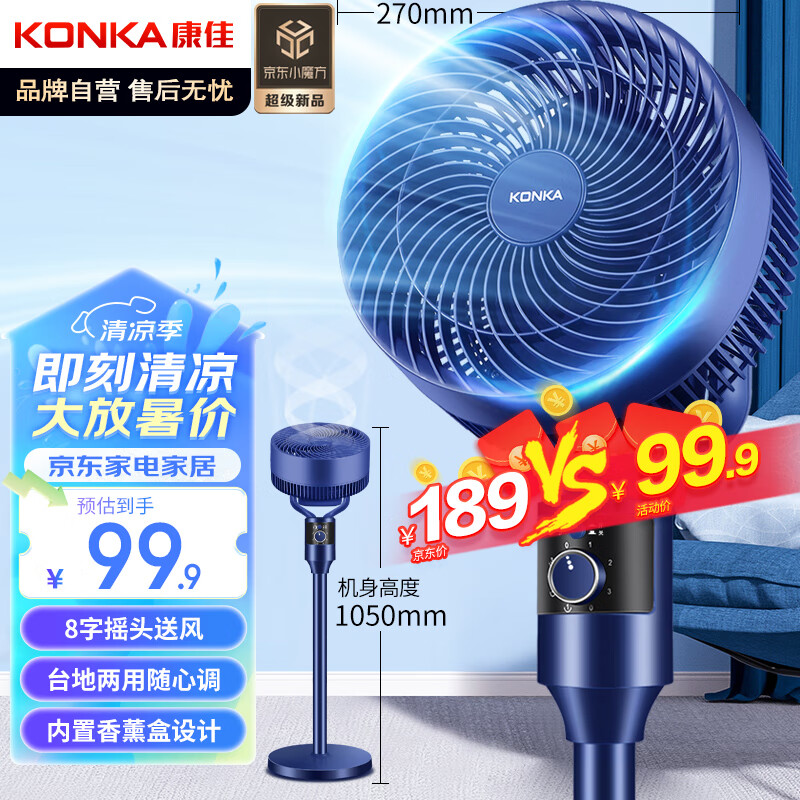 康佳(KONKA)空气循环扇电风扇家用风扇八字摇头台式小风扇立式换气扇轻音电扇节能大风量落地扇KXHS-1811-P价格:149.90元!