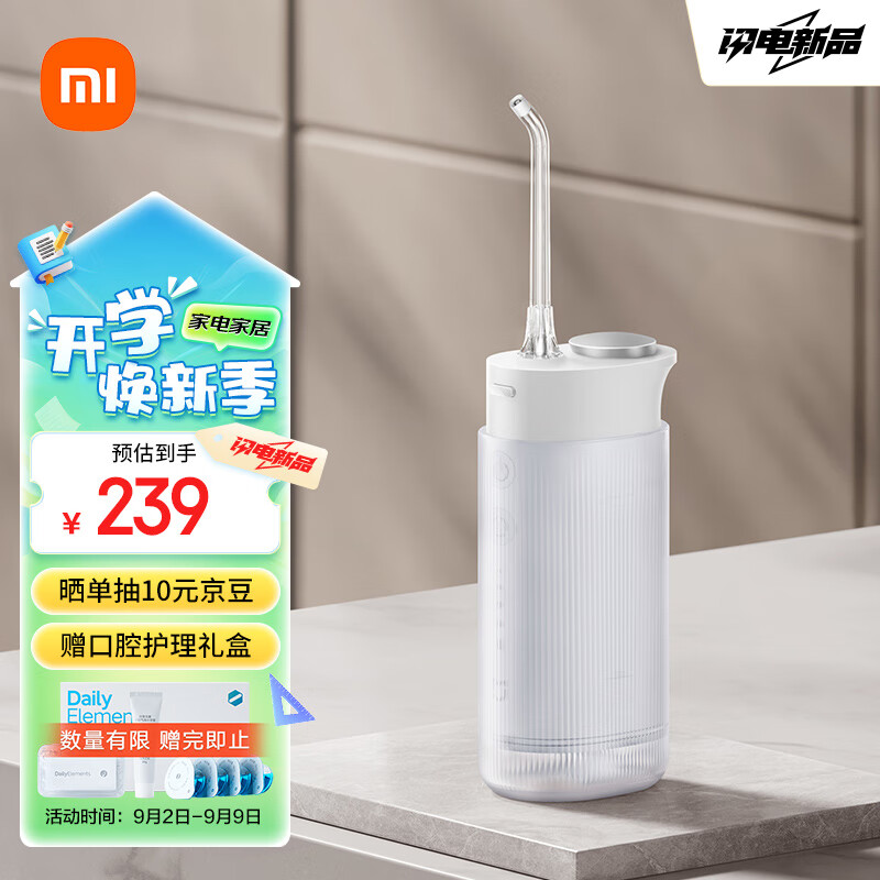 米家小米便携式冲牙器洗牙器水牙线 F400白色 云感伞射机身收纳喷嘴4挡冲牙模式 礼物推荐价格:239.00元!