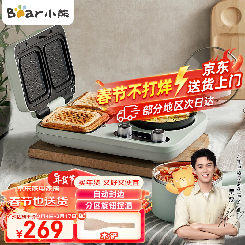 小熊(Bear)早餐机 三明治早餐机多士炉面包机电饼铛电热锅电火锅电蒸锅多功能煎饼锅 DSL-A13F1价格:299.00元!