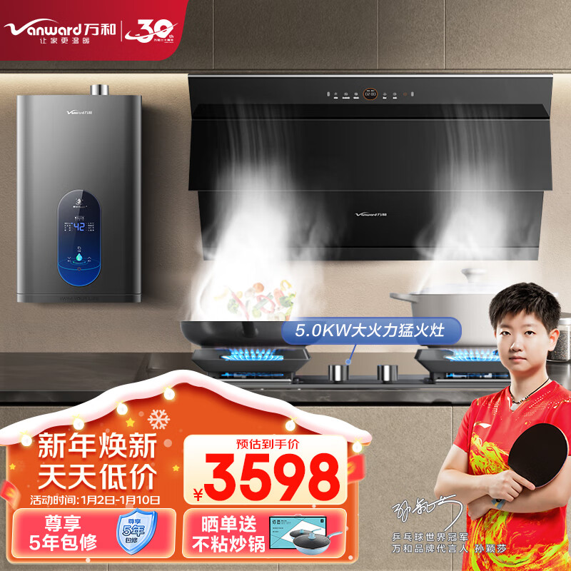 万和(Vanward)烟灶热三件套 24风量直流变频抽油烟机燃气灶具热水器套装 WJ920+C5L90S+ME5D16(天然气)价格:3598.00元!