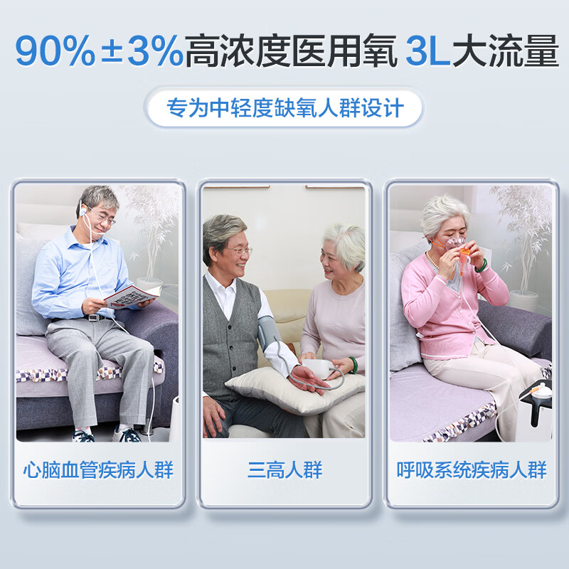 可孚 制氧机医用3L老人孕妇家用家庭便携式吸氧机氧气机吸氧器制氧雾化一体仪器 JMC3D Ni(灰色) +血氧仪价格:2980.00元!