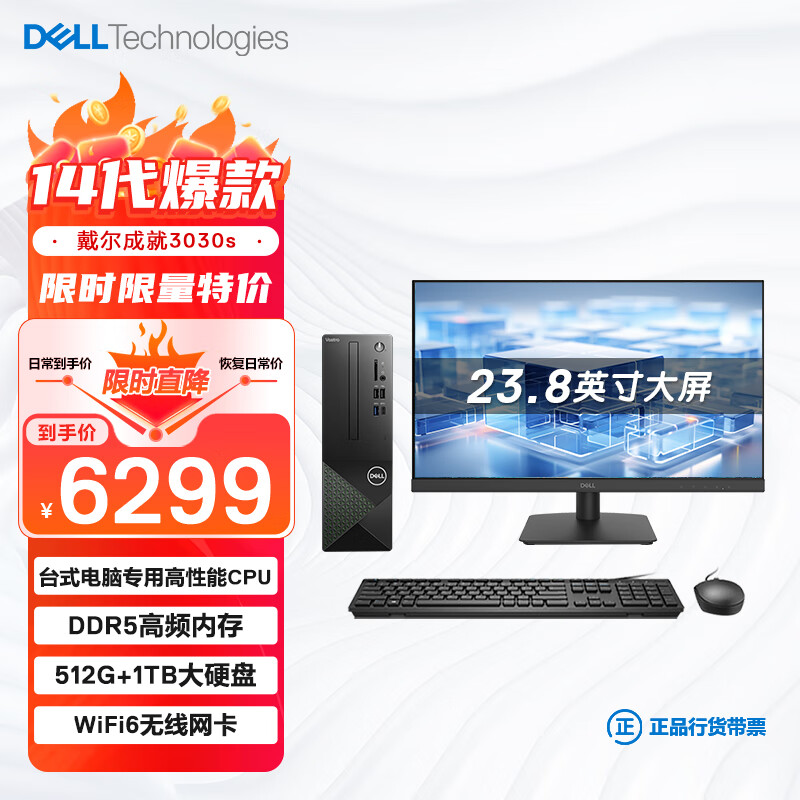 戴尔 成就3030S 高性能 台式电脑主机(酷睿14代i7-14700 16G 512G+1TB)23.8英寸 办公生产力 图站设计价格:6299.00元!