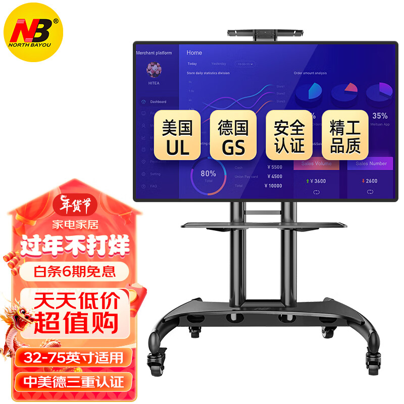 NB(32-75英寸)电视机挂架视频会议平板移动推车电视支架落地电视架显示屏电子白板通用架子价格:449.00元!