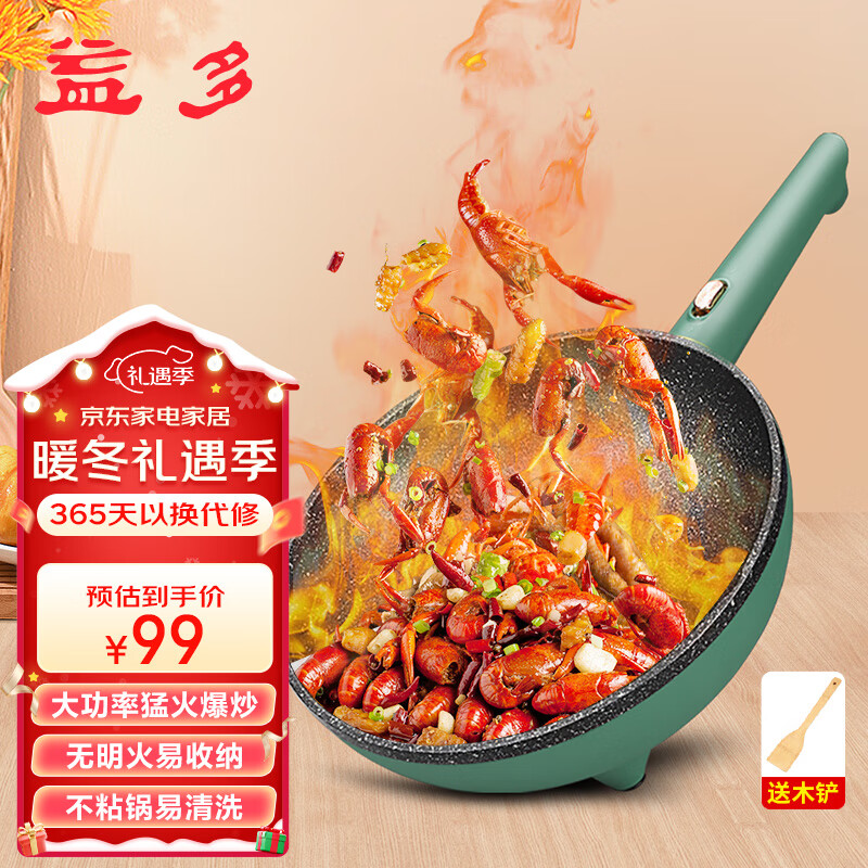 益多电炒锅 多功能家用电炒菜炒锅手持不粘锅插电大功率爆炒电锅煎炒蒸煮 BY-2801价格:99.00元!