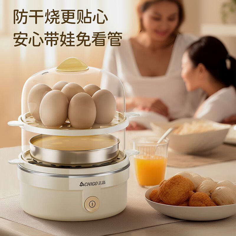 志高(CHIGO)煮蛋器双层家用蒸蛋器 电蒸锅早餐煮蛋机 防干烧蒸蛋神器 可煮14个蛋【配蒸碗+量杯】ZDQ210价格:39.00元!