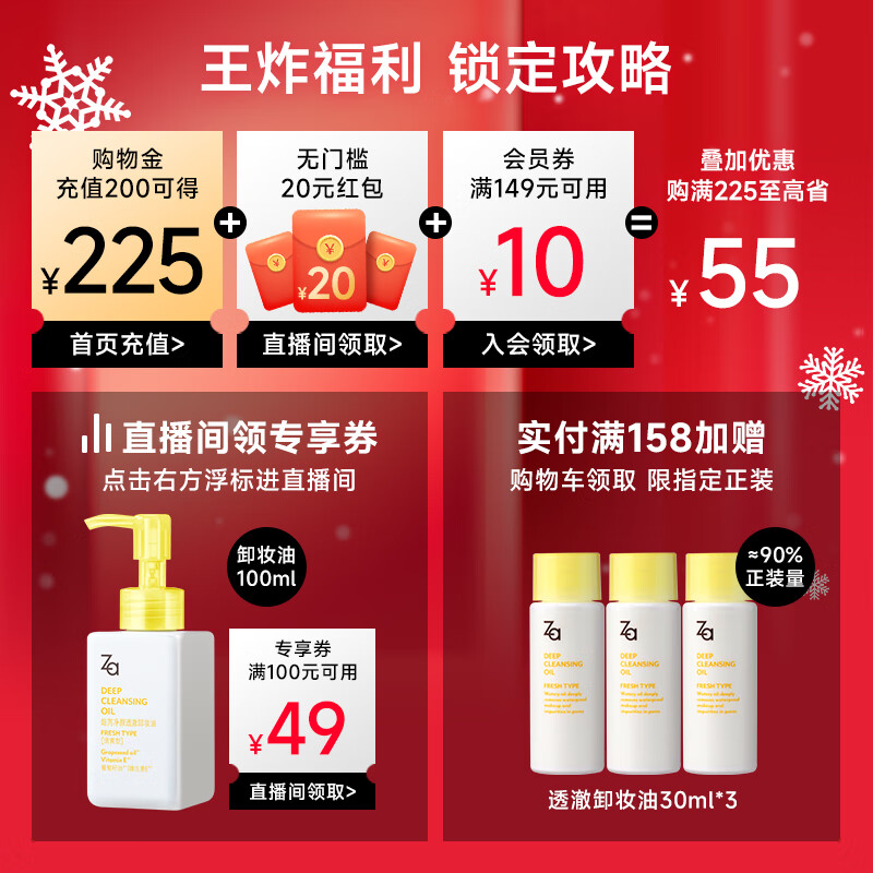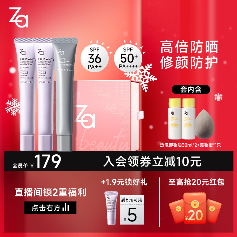 姬芮(ZA)美白防晒套装礼盒防晒隔离遮瑕三合一SPF50+PA++++价格:189.00元!