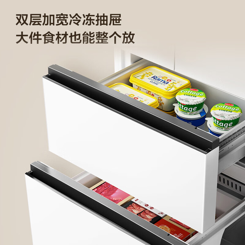 2、餐厅比较小,特意买的这款窄点的,但是很深,容量不错,一个人用,感觉挺能放的,不过我更喜欢大的。这款还可以,很省电,能联网很满意。