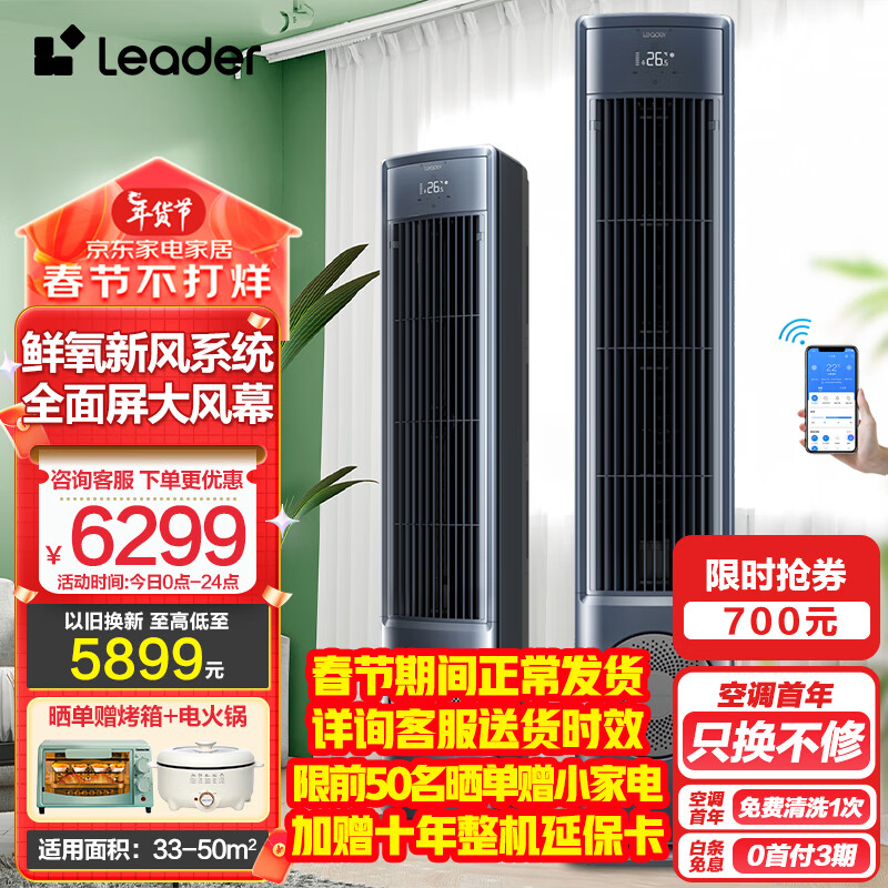 Leader海尔智家新风空调立式大3匹家用冷暖新一级能效变频节能柜机自清洁空调KFR-72LW/01VDA81TU1[家电]价格:6999.00元!