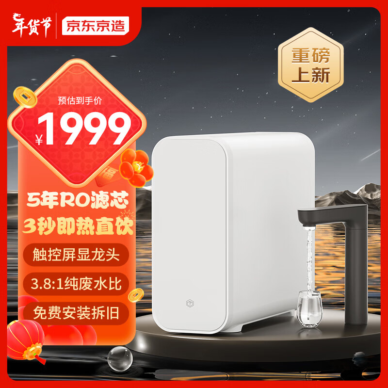 京东京造 800G即热零陈水反渗透净水器 加热直饮一体机 家用净水机厨下式 3秒即热 触控屏显 5年RO滤芯价格:2299.00元!
