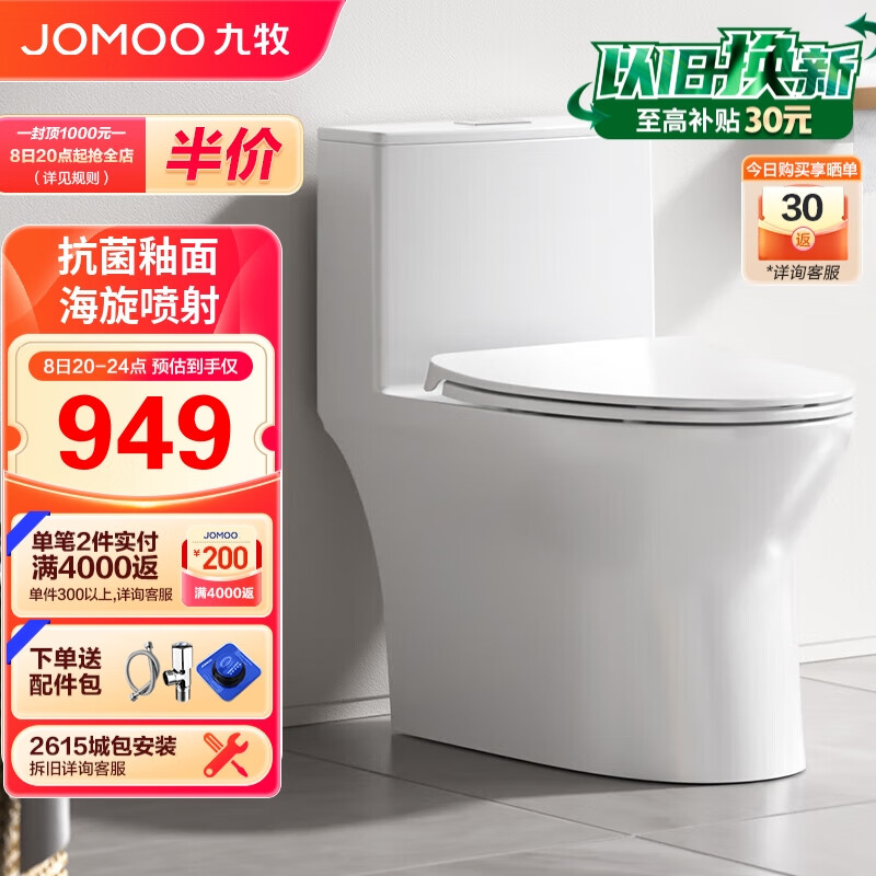 九牧(JOMOO)11425-2-1/31K-1连体小户型快拆盖板喷射虹吸家用马桶305坑距价格:1199.00元!