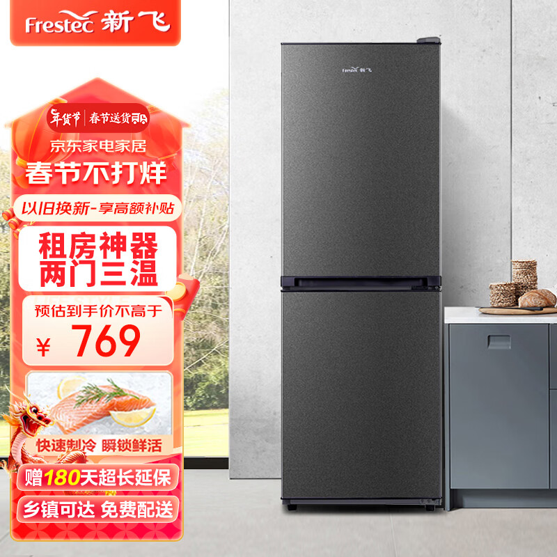 新飞(Frestec)170升双门三温小冰箱迷你小型冰箱高颜值租房办公宿舍两门冰箱BCD-170K2AT价格:769.00元!