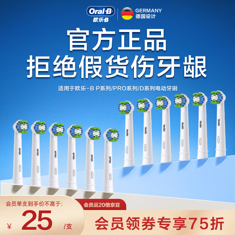 欧乐B电动牙刷头 成人精准清洁型12支装 EB20-12 适配成人D/P/Pro系列圆头 标准型软毛智能牙刷刷头盒装价格:399.00元!