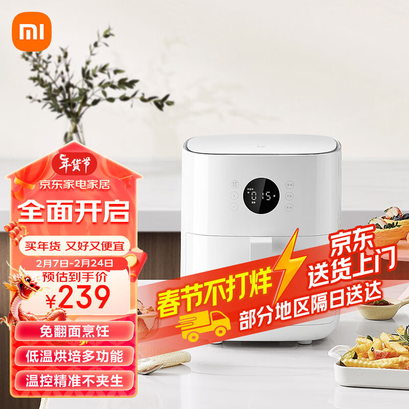 米家小米智能空气炸锅4.5L 免翻面 精准控温空气炸 食品级不沾涂层 家用多功能无油电炸锅价格:239.00元!