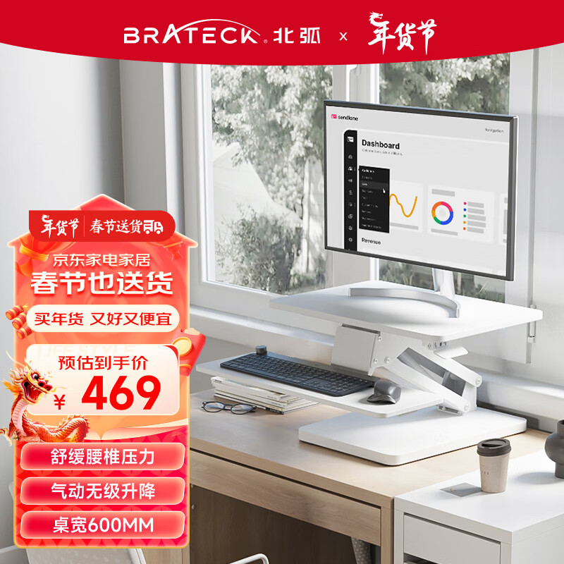 Brateck升降电脑桌 北弧站立办公升降台 站立式电脑升降支架 D340白价格:529.00元!