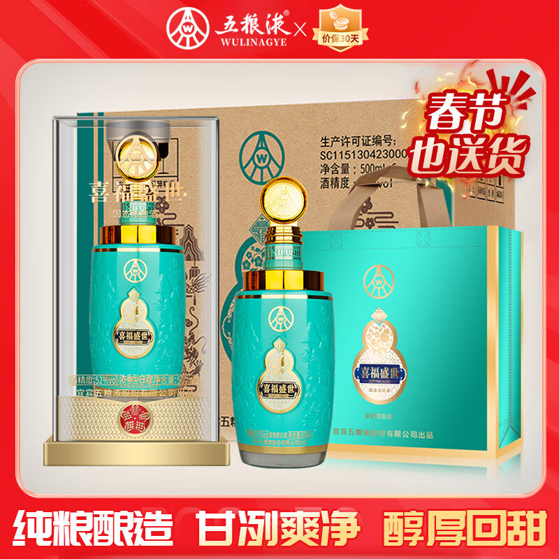 五粮液股份出品 喜福盛世龙韵蓝浓香型白酒52度500ml*6瓶整箱装龙年送礼价格:399.00元!
