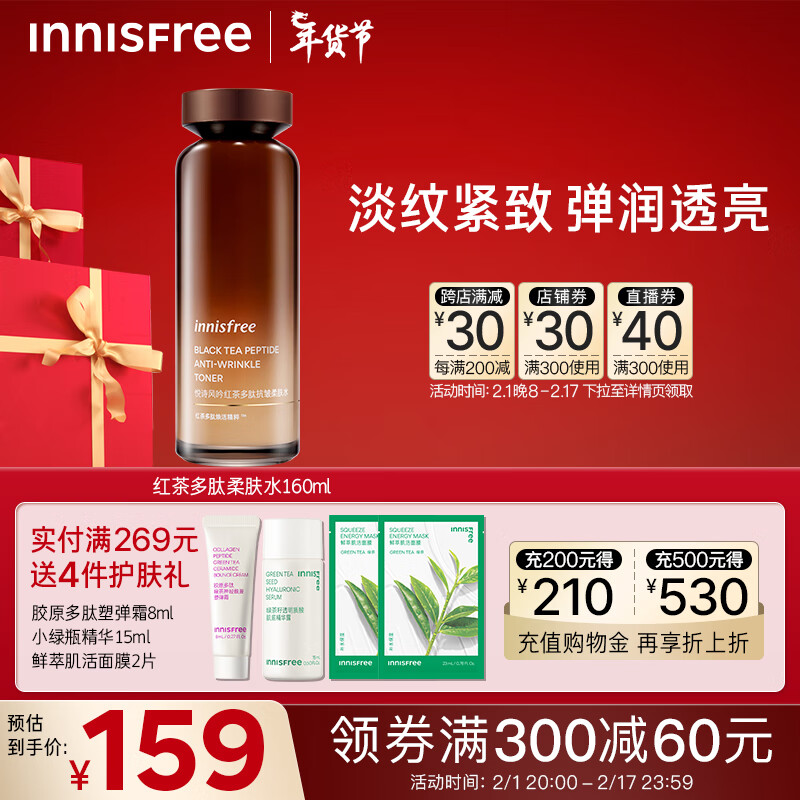 悦诗风吟(Innisfree)红茶爽肤水烟酰胺紧致修护熬夜焕活补水保湿滋养肌肤柔肤水护肤品价格:198.75元!