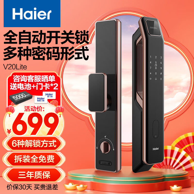 海尔(Haier)智能门锁指纹锁防盗门锁智能锁入户门防盗门指纹密码锁电子门锁HFA-20V-U1Lite免费上门安装价格:999.00元!