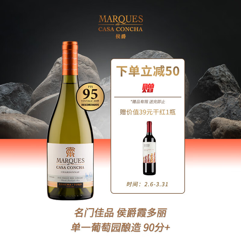 Concha y Toro干露侯爵进口特酿霞多丽干白葡萄酒750ml单瓶 约会聚餐红酒价格:299.00元!