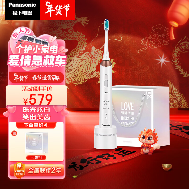 松下(Panasonic)电动牙刷适合敏感牙龈 去渍护龈 智能感应 3种洁齿模式 新年礼物送男友送女友DC12白色价格:669.00元!
