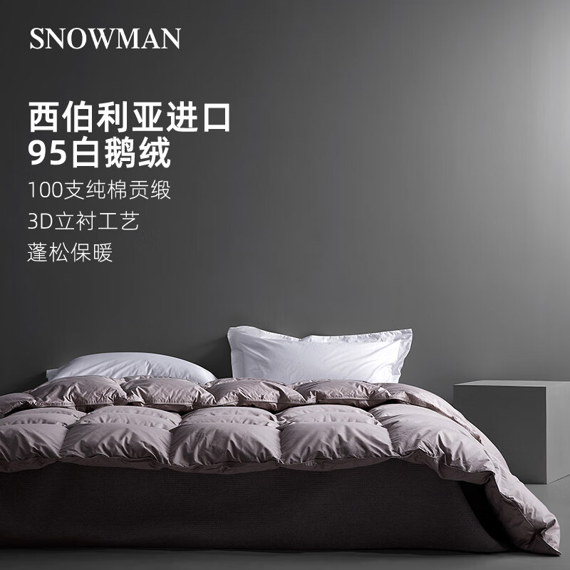 斯诺曼100支贡缎西伯利亚95%白鹅绒羽绒冬被 填充1500g220x240cm【灰】价格:2899.00元!