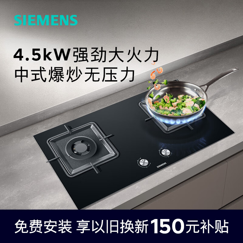 西门子(SIEMENS)燃气灶天然气灶4.5kW大火力双灶灶具台嵌两用灶 钢化玻璃面板猛火高效 ER7JGA23MP价格:1799.00元!