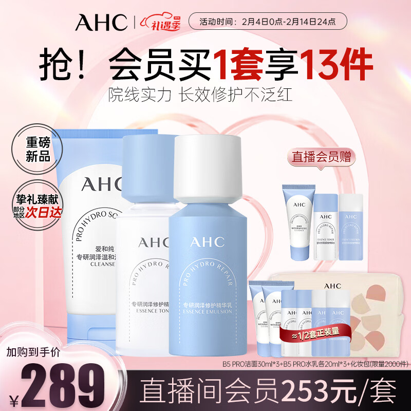 AHC升级版B5润泽修护水乳洁面护肤套装(水+乳+洗面奶)生日新年礼物价格:289.00元!