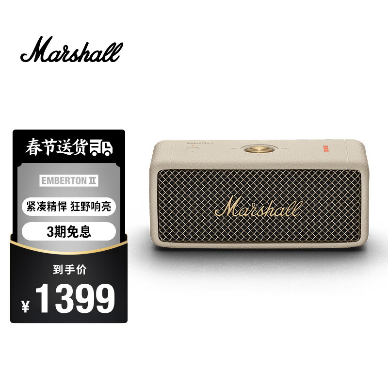 MARSHALL(马歇尔)EMBERTON II 音箱便携式2代无线蓝牙家用户外防尘防水小音响 油彩白价格:1399.00元!