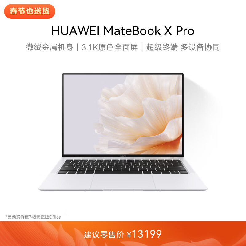华为MateBook X Pro微绒典藏版笔记本电脑 13代酷睿处理器/3.1K原色触控屏/商务办公本 i7 32G 2T 锦白价格:13199.00元!