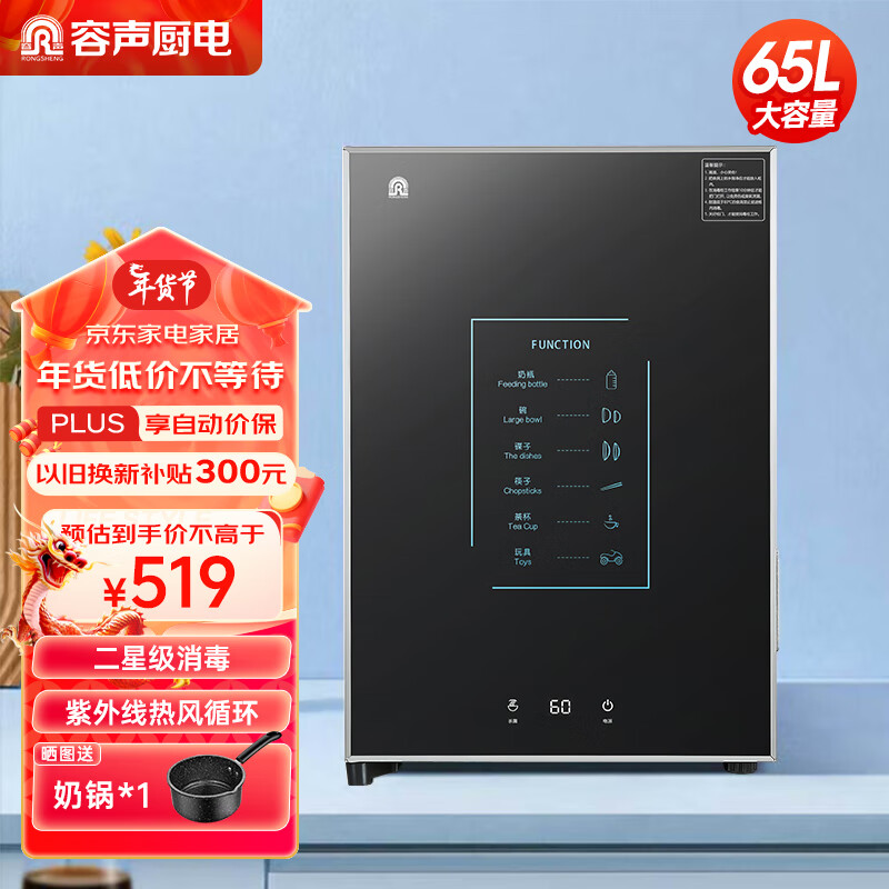 容声(RONGSHENG)消毒柜家用 立式小型消毒碗柜 二消毒 紫外线热风循环 65L保洁柜65-RQ230价格:519.00元!