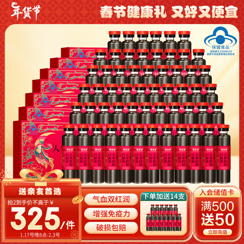 固本堂 人参阿胶口服液20ml*7支*7盒再加14支(共63支)阿胶浆女人送父母营养品年货礼盒价格:370.00元!