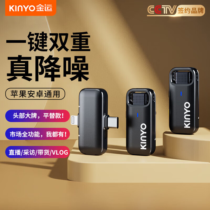 金运M36无线领夹麦克风直播收音麦一拖二收音器手机电脑通用户外采访降噪短视频专业vlog唱歌K歌便携话筒录音价格:189.00元!
