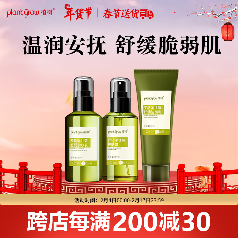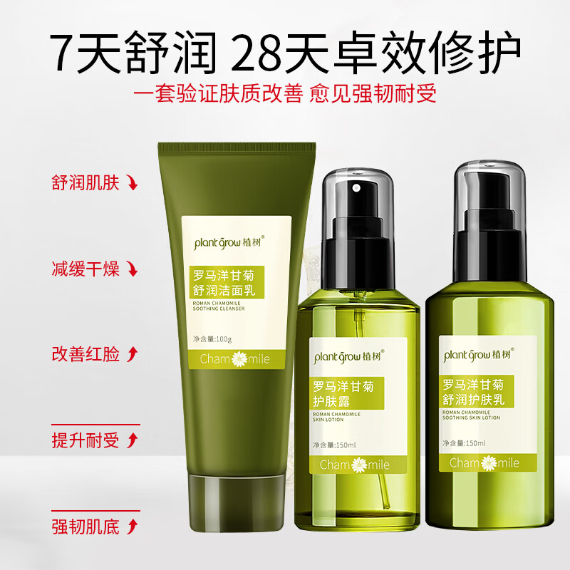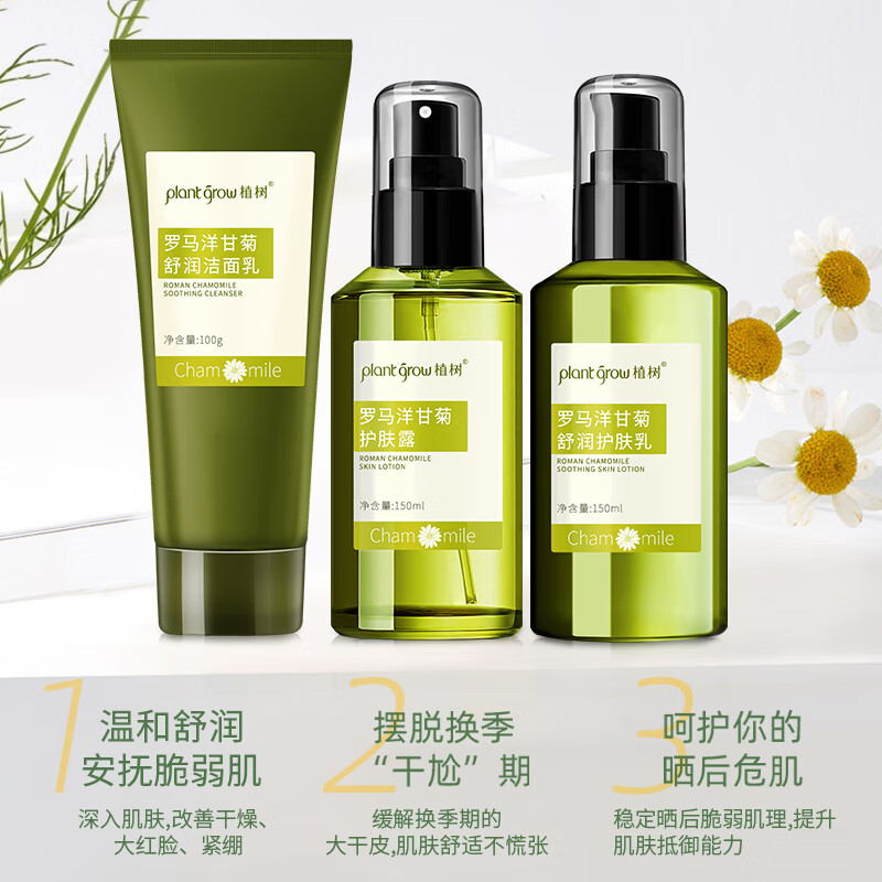 植树(plant grow)洋甘菊水乳洗面奶三件套 改善薄角质补水保湿敏感肌肤护肤品套装价格:119.00元!