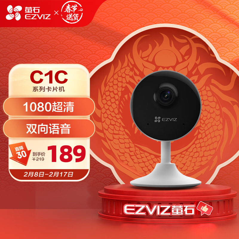 萤石(EZVIZ)C1C 1080P摄像头200W无线家用智能网络摄像机wifi远程安防监控摄像头12米夜视婴儿看护器价格:189.00元!
