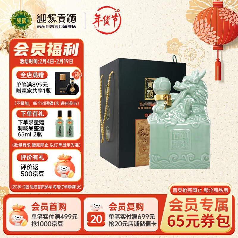 迎驾贡酒龙皇玉玺 浓香型白酒 52度 2.5L坛装(内含礼袋)年货送礼价格:539.00元!