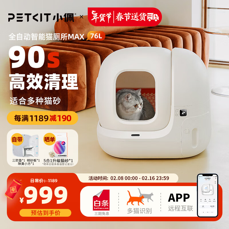小佩智能猫砂盆全自动猫厕所MAX 自动猫砂盆电动铲屎机全封闭式隔臭价格:1189.00元!